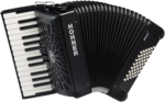 accordeon trolley tas, zwart-rood, met wielen, 40h x 36b x 22d, accesoire vakje, voor 48 bassen